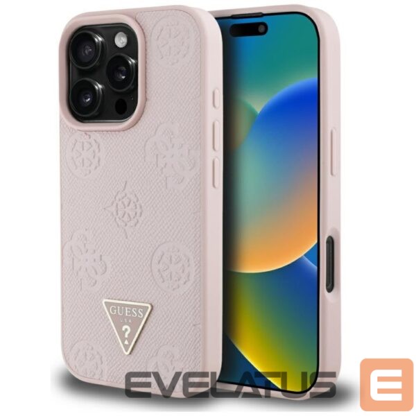 Citas preces Guess Guess Grained Hot Stamp Peony Triangle Logo MagSafe iPhone 16 Pro Case – Pink