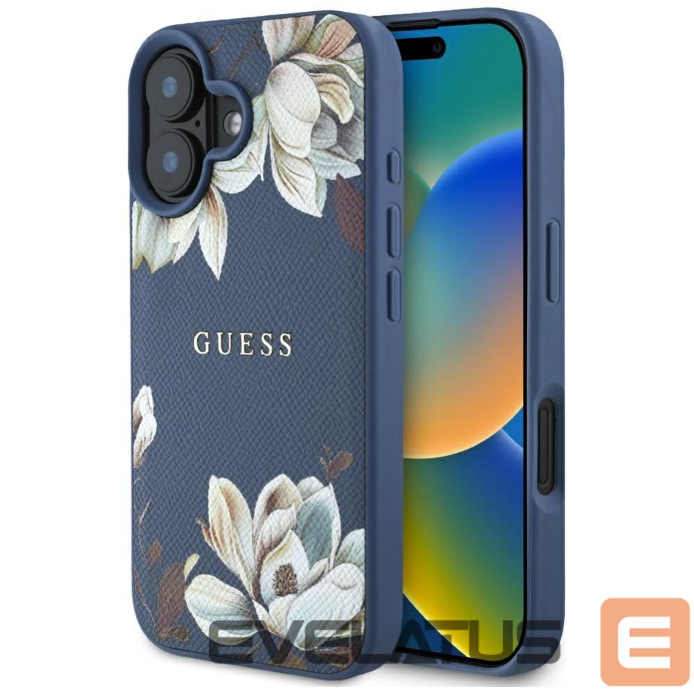 Citas preces Guess Guess Grained Printed Flower Pattern MagSafe case for iPhone 16 blue