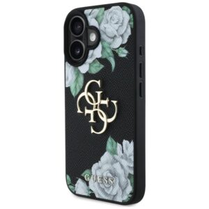 Citas preces Guess Guess Grained Roses Big 4G logo case for iPhone 16 – black