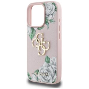 Citas preces Guess Guess Grained Roses Big 4G logo iPhone 16 Pro case – pink