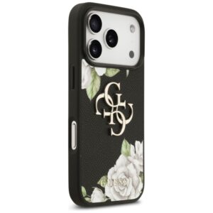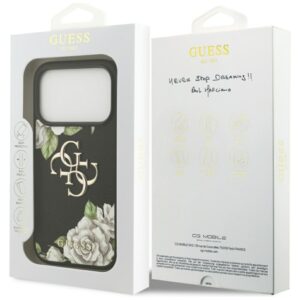 Citas preces Guess Guess Grained Roses & Big 4G Logo iPhone 17 Pro Case – Black