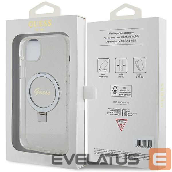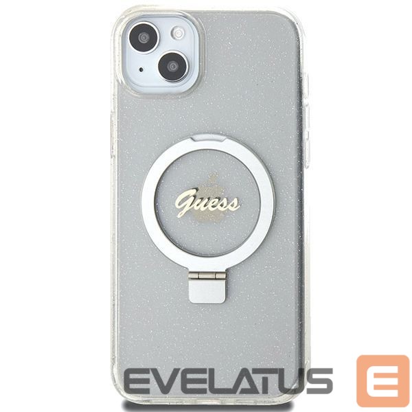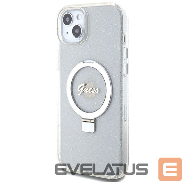 Citas preces Guess Guess GUHMP15MHRSGSD iPhone 15 Plus / 14 Plus 6.7" transparent/transparent hardcase Ring Stand Script Glitter MagSafe
