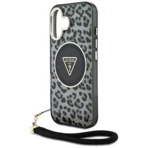 Citas preces Guess Guess HC IML Leopard Triangle Cord Strap MagSafe case for iPhone 16 – black