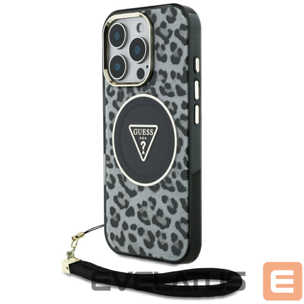 Citas preces Guess Guess HC IML Leopard Triangle Cord Strap MagSafe Case for iPhone 16 Pro – Black