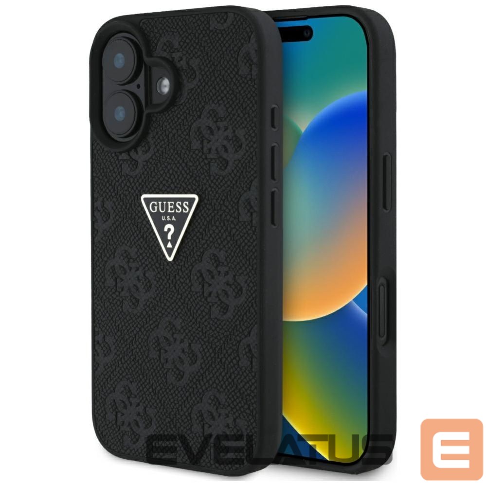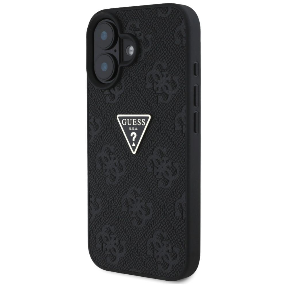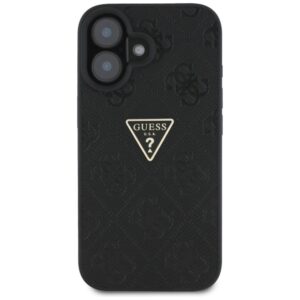 Citas preces Guess Guess Hot Stamp 4G Pattern Triangle Metal Logo case for iPhone 16 – black