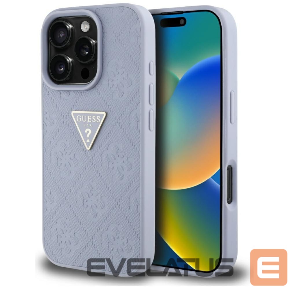 Citas preces Guess Guess Hot Stamp 4G Pattern Triangle Metal Logo Case for iPhone 16 Pro Max – Purple