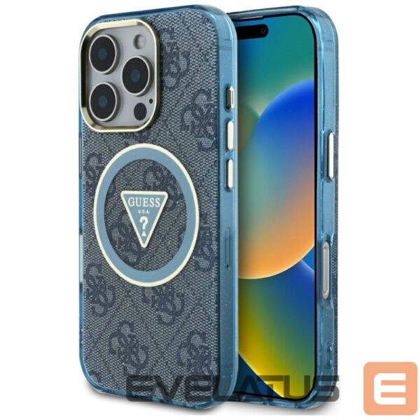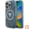 Citas preces Guess Guess IML Metal Glitter 4G Circle Triangle MagSafe Case for iPhone 16 Pro – Blue