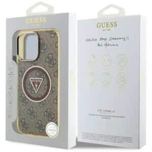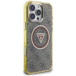Citas preces Guess Guess IML Metal Glitter 4G Circle Triangle MagSafe Case for iPhone 16 Pro Max – Brown