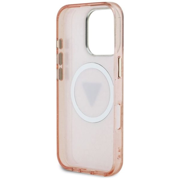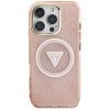 Citas preces Guess Guess IML Metal Glitter 4G Circle Triangle MagSafe Case for iPhone 16 Pro – Pink