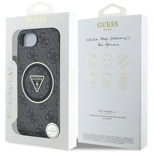 Citas preces Guess Guess IML Metal Glitter 4G Circle Triangle MagSafe Case for iPhone 16e – Black