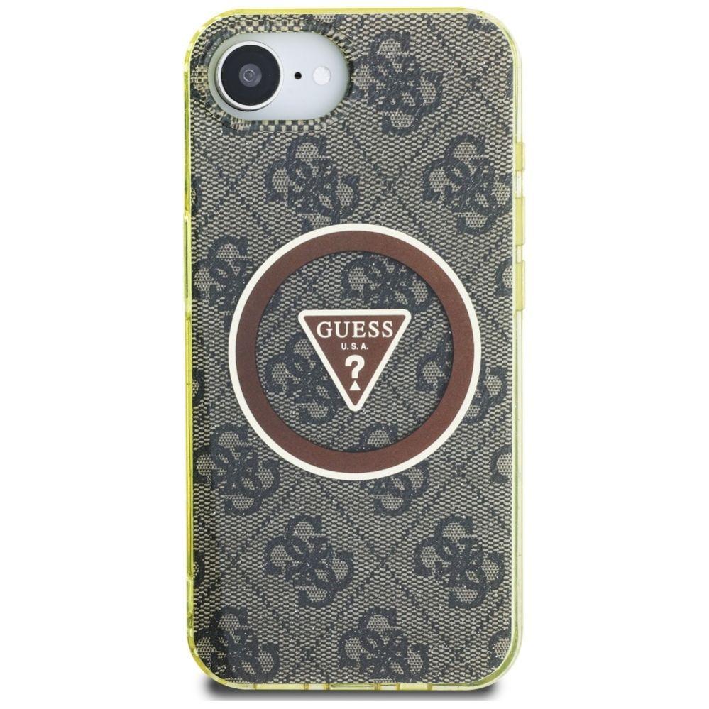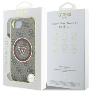 Citas preces Guess Guess IML Metal Glitter 4G Circle Triangle MagSafe case for iPhone 16e – brown