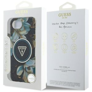 Citas preces Guess Guess IML Metal Glitter Flowers Triangle MagSafe case for iPhone 16e – black
