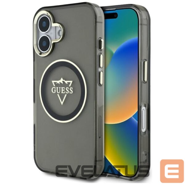 Citas preces Guess Guess IML Metal Mountain Logo MagSafe case for iPhone 16 – black