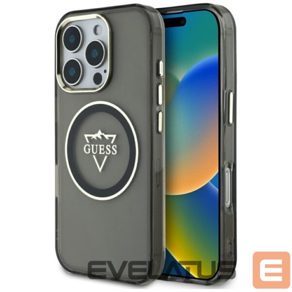 Citas preces Guess Guess IML Metal Mountain Logo MagSafe iPhone 16 Pro Case – Black