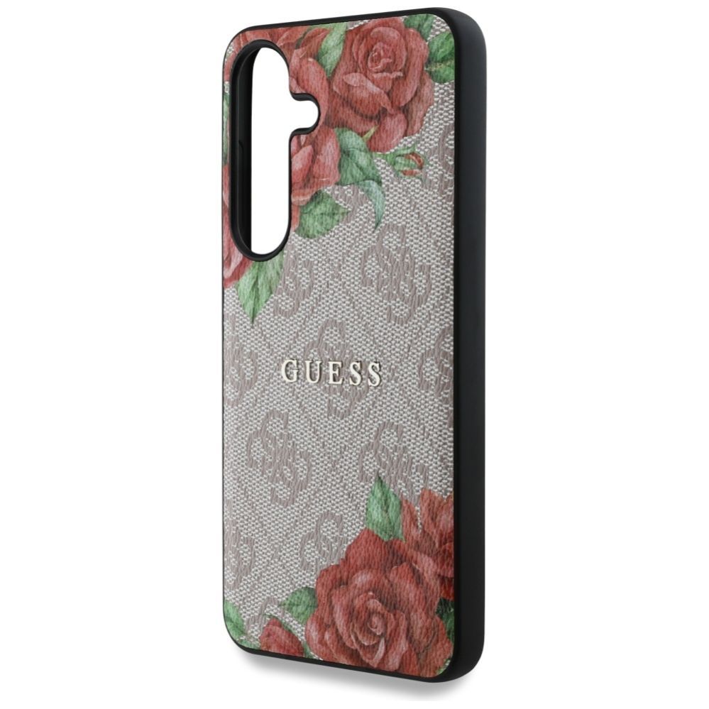 Citas preces Guess Guess Leather 4G Flowers Print Metal Classic Logo MagSafe Case for Samsung Galaxy S25 – Pink