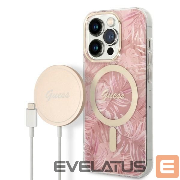 Citas preces Guess Guess MagSafe case + charger set for iPhone 14 Pro 6.1" – pink