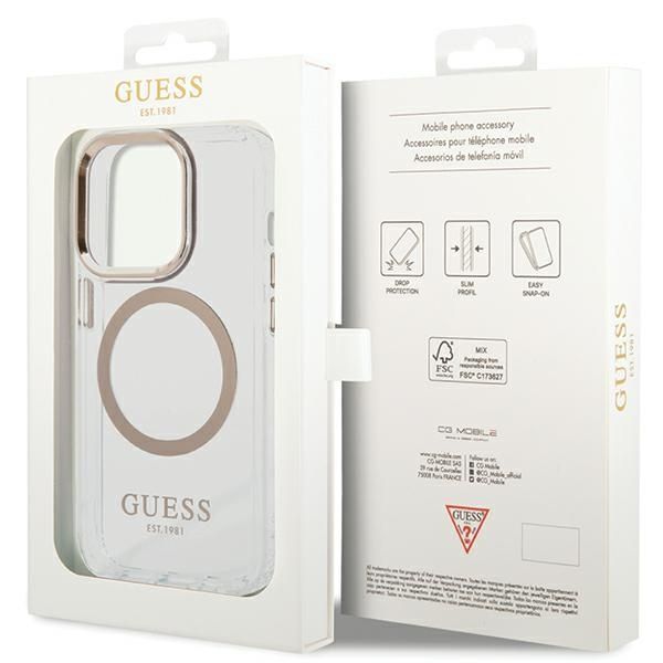 Citas preces Guess Guess Metal Outline Magsafe iPhone 15 Pro Max Case – Gold