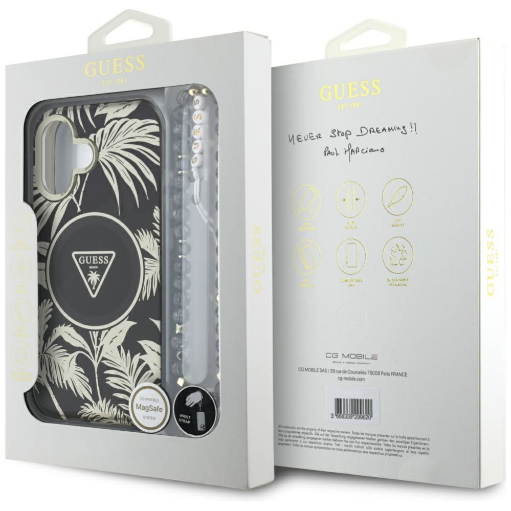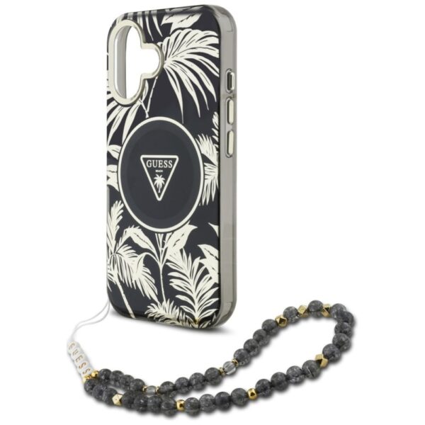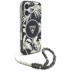 Citas preces Guess Guess Palm Trees Triangle Pearl Strap MagSafe case for iPhone 16 black