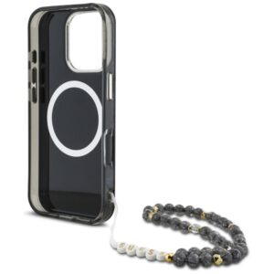 Citas preces Guess Guess Palm Trees Triangle Pearl Strap MagSafe case for iPhone 16 Pro black