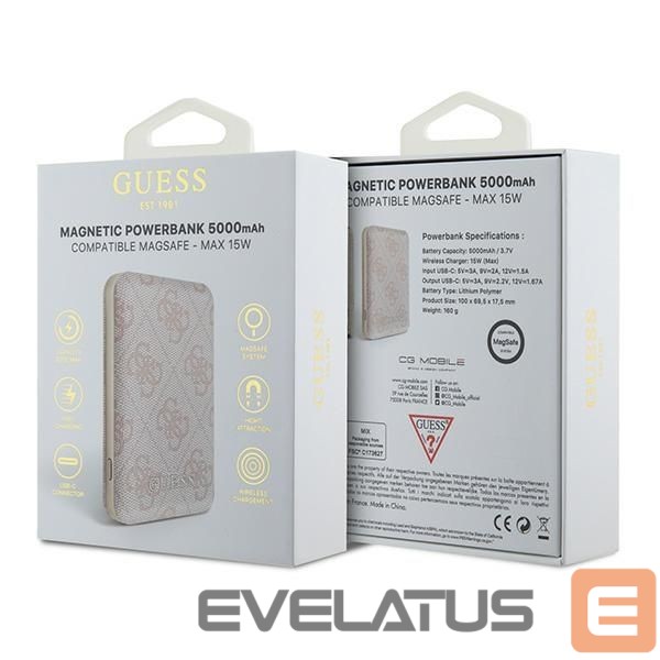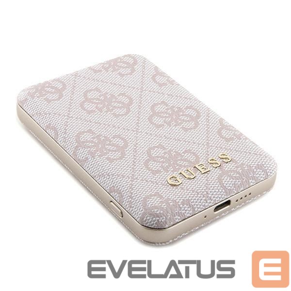 Citas preces Guess Guess Powerbank inductive 15W GUPB5FP4EMGP 5000mAh pink/pink 4G Leather Metal Logo MagSafe