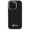Citas preces Guess Guess Silicone Script Metal Logo & Frame Case for iPhone 16 Pro Max – Black