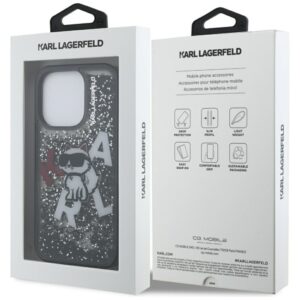 Citas preces Karl Lagerfeld Karl Lagerfeld Liquid Glitter Choupette Logo Case for iPhone 16 Pro – Black