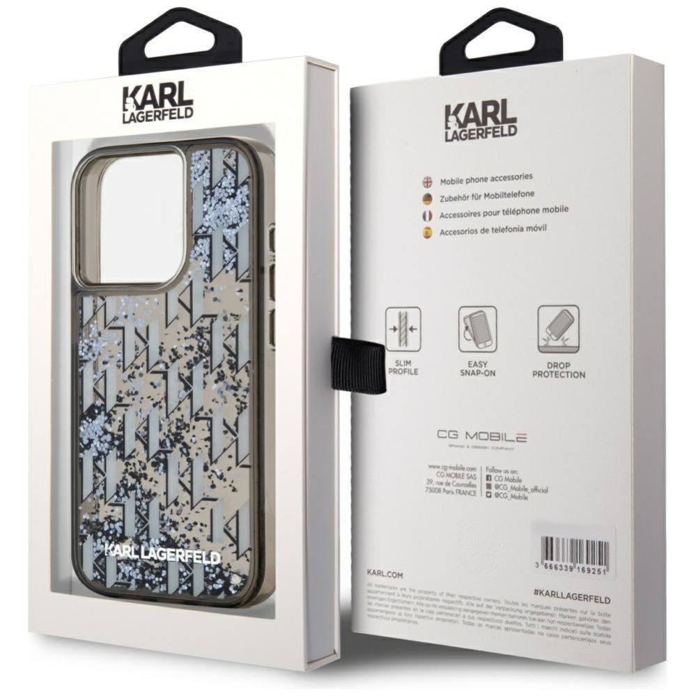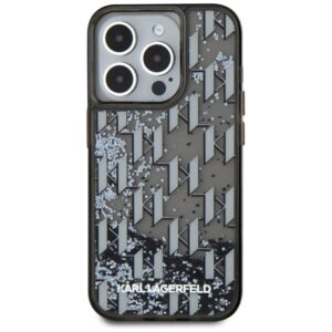 Citas preces Karl Lagerfeld Karl Lagerfeld Liquide Glitter Monogram Gradient iPhone 15 Pro Max Case – Black