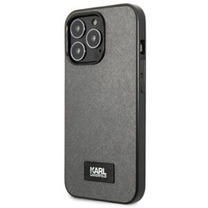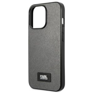 Citas preces Karl Lagerfeld Karl Lagerfeld Saffiano Plaque Case for iPhone 13 Pro Max 6.7" – Silver