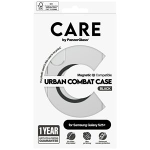 Citas preces Panzer Glass CARE by PanzerGlass Flagship Urban Combat Black QI Case for Samsung Galaxy S25+ – Transparent