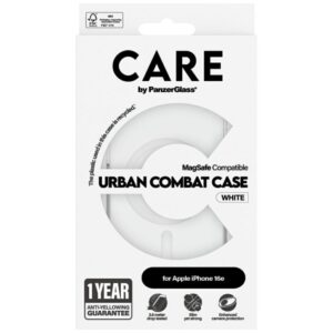 Citas preces Panzer Glass CARE by PanzerGlass Flagship Urban Combat White MagSafe iPhone 16e Case – Clear