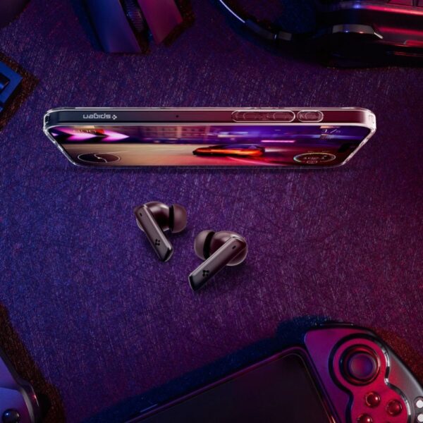The headphones offer an impressive 30 hours of playtime thanks to their powerful battery and compact charging case, making them ideal for both everyday activities and longer journeys. Gamers will appreciate the low-latency mode, which ensures smooth and synchronized gameplay, while users seeking a personalized audio experience will enjoy the Spigen Audio app with five preset profiles and a customizable equalizer.