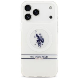 Citas preces U.S. Polo PU US Polo DH and Bottom Stripe Logo MagSafe Case for iPhone 17 Pro Max – White