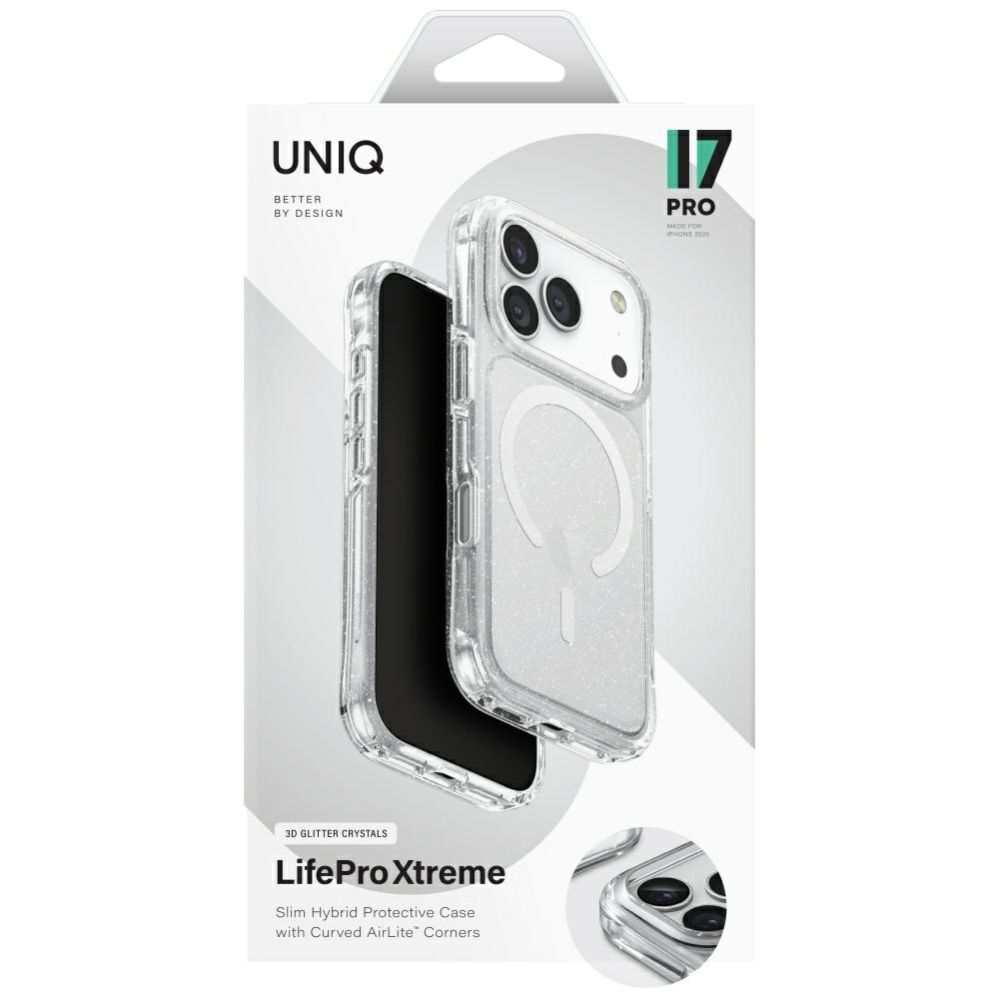 Citas preces UNIQ Uniq LifePro Xtreme Magclick Charging Case for iPhone 17 Pro – Clear-Glitter