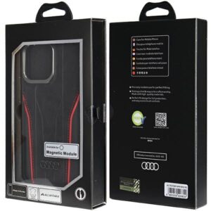 Cits mobilo telefonu aksesuārs Audi Audi Genuine Leather case with MagSafe for iPhone 14 Pro Max – black and red