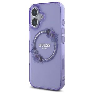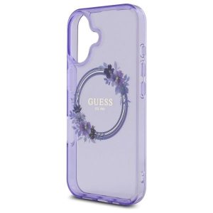 Cits mobilo telefonu aksesuārs Guess Guess IML Flowers Wreath MagSafe iPhone 16 Case – Purple