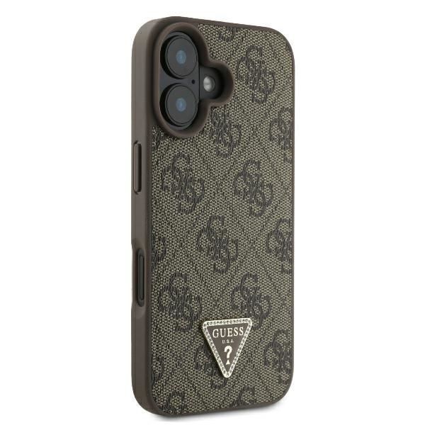 Cits mobilo telefonu aksesuārs Guess Guess Leather 4G Triangle Strass MagSafe Case for iPhone 16 Plus – Brown