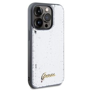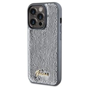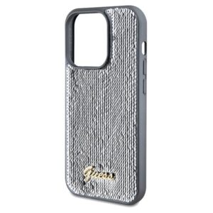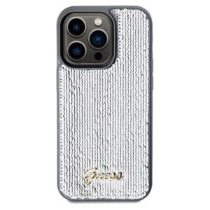 Cits mobilo telefonu aksesuārs Guess Guess Sequin Script Metal case for iPhone 14 Pro Max – silver