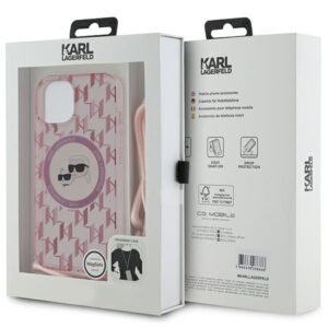 Cits mobilo telefonu aksesuārs Karl Lagerfeld Karl Lagerfeld IML Crossbody Monogram Karl & Choupette Head MagSafe case for iPhone 15 / 14 / 13 – pink