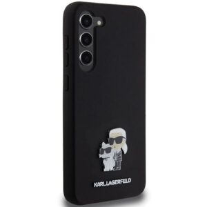 Cits mobilo telefonu aksesuārs Karl Lagerfeld Karl Lagerfeld Silicone Karl&Choupette Metal Pin case for Samsung Galaxy S24+ – black