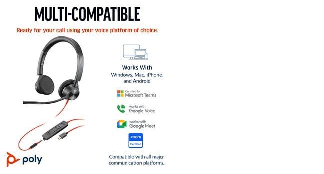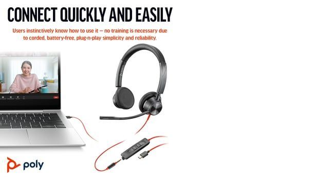 HP Poly Blackwire 3325 Stereo Microsoft Teams Certified USB-C Headset +3.5mm Plug +USB-C/A Adapter