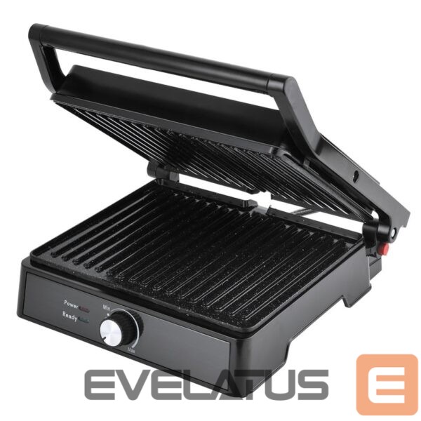 Funkcijas: Divas sildīšanas plāksnes ar izmēriem 29x24cm, Korpusa elementi izgatavoti no matēta tērauda, 180° plata atlocīšanas funkcija, Marmora pārklājums, plīts virsmu nepiedegošs pārklājums, Tauki noplūst pilienu paplātē, Bezgalīgi maināma regulēšana