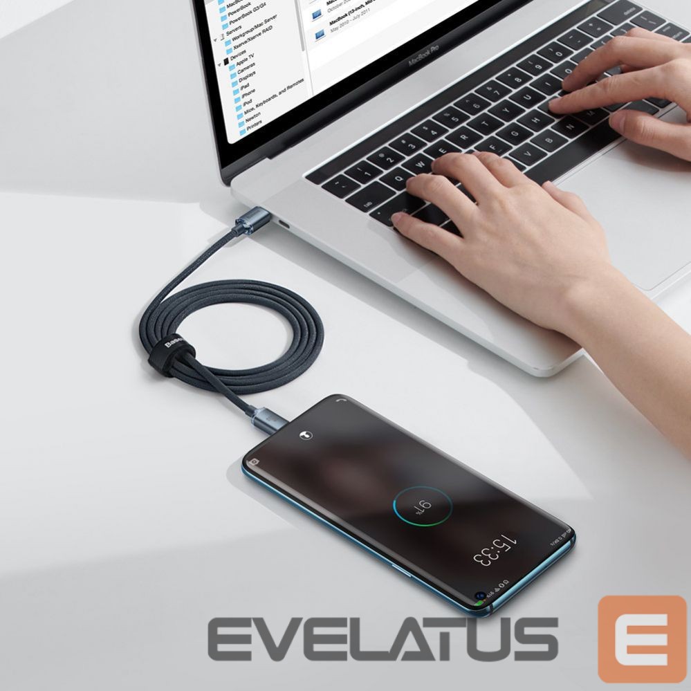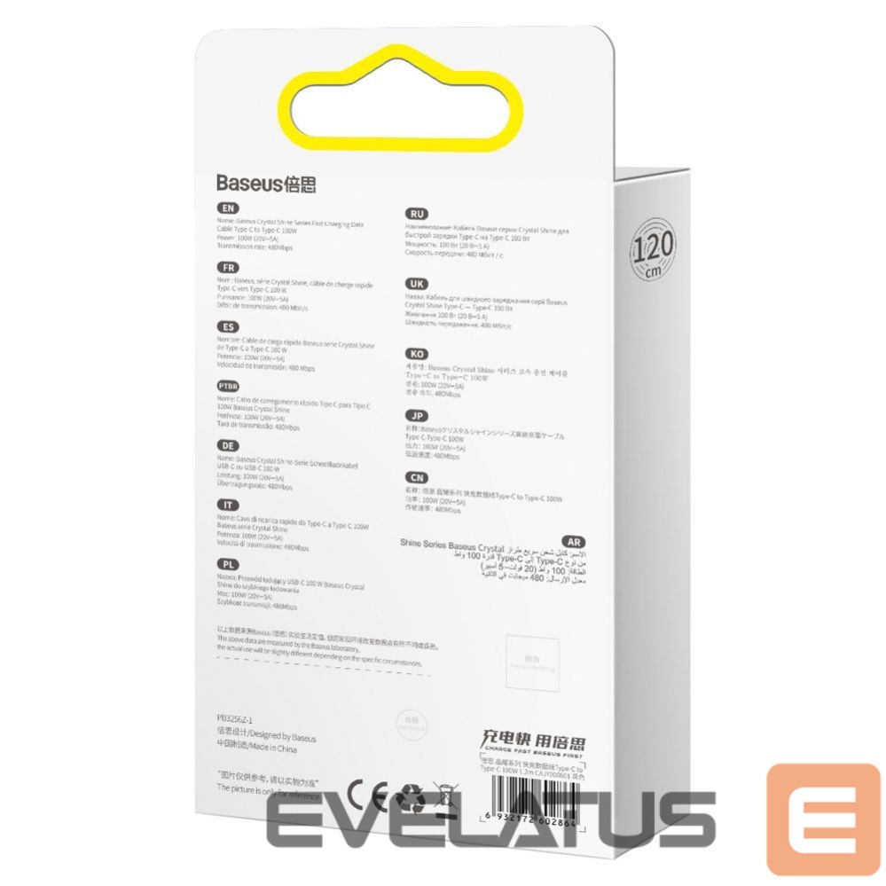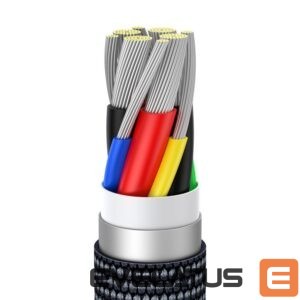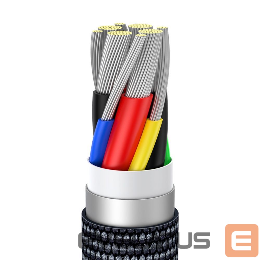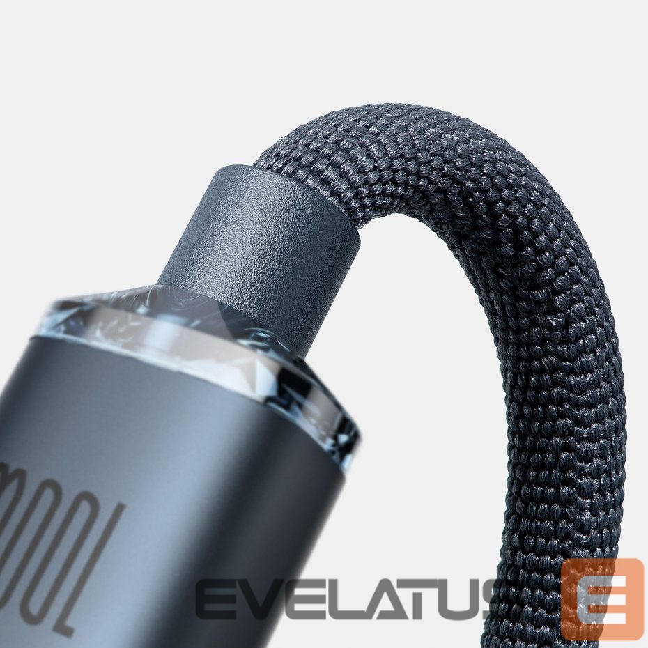 The Baseus Crystal Shine Series braided USB Type C to USB Type C cable cover with a durable texture has additional reinforcement where the plug connects to the cable. Therefore, it is resistant to bending and tension. Inside there is an 8-wire copper cable that, thanks to an intelligent chip, does not heat up even during simultaneous charging and data transfer.