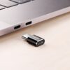 Black Baseus Mini Micro USB to USB-C Adapter on a white background
