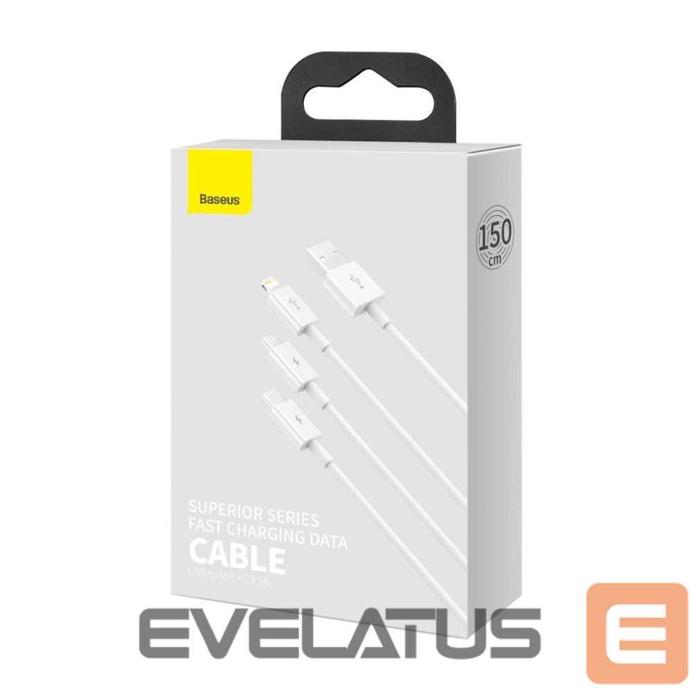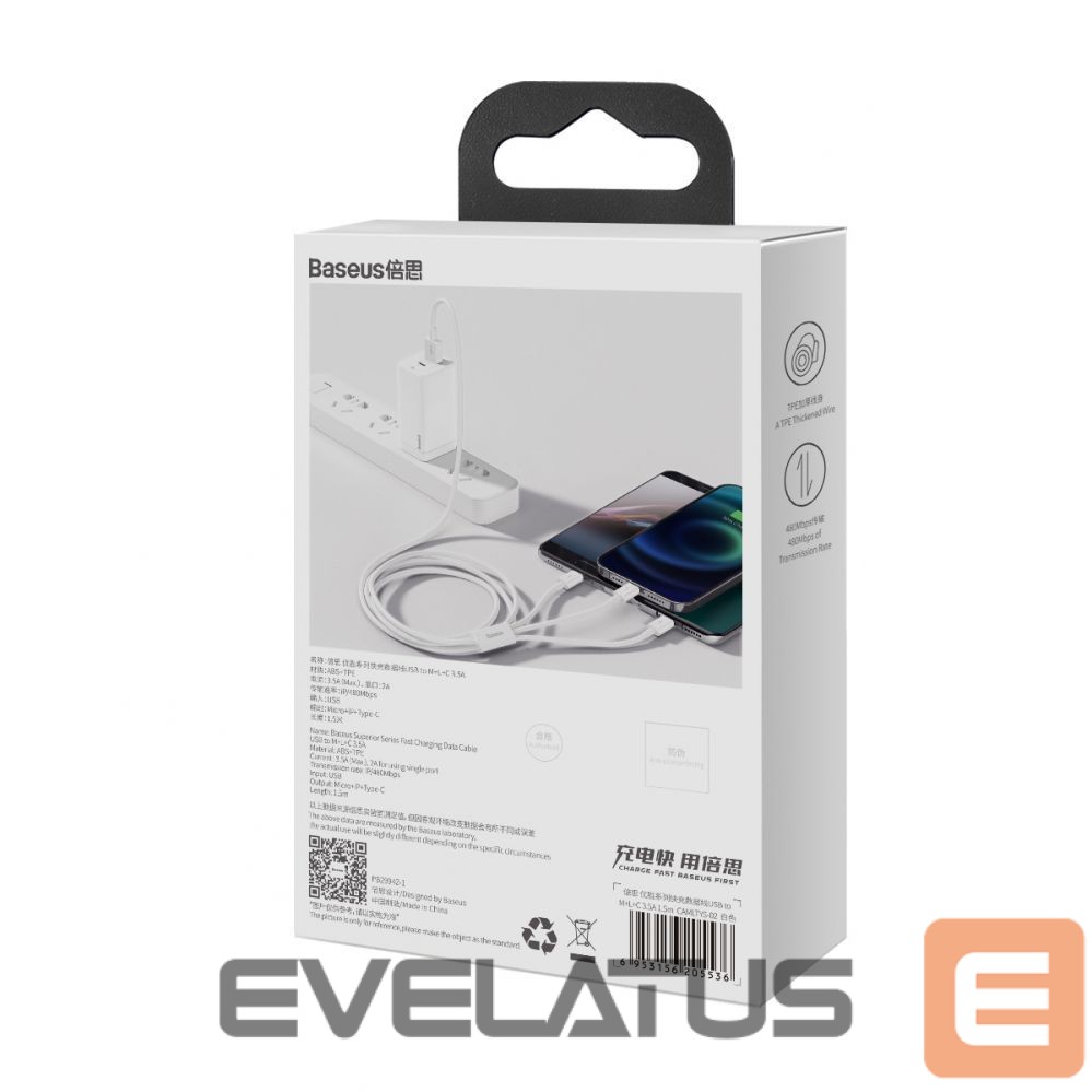 Kabelis Baseus Baseus Superior Series USB-A – USB-C / Lightning / micro USB 3.5A cable 1m – white