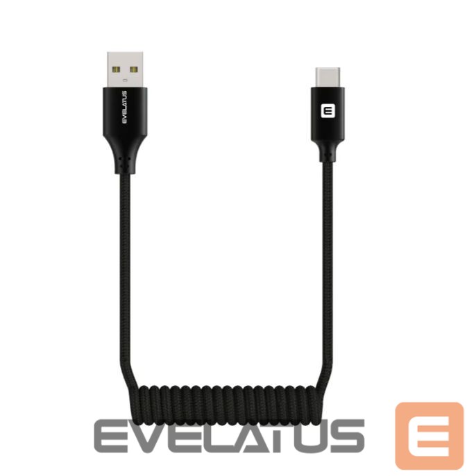 Kabelis Evelatus Evelatus AutoSpring Coiled Cable USB A to USB C connector 1.2M Black