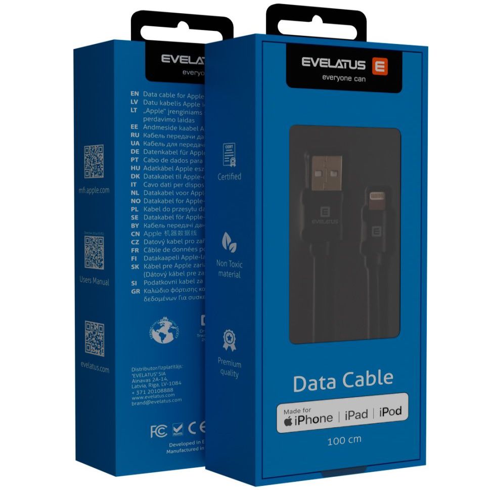 Kabelis Evelatus Universal MFI Data Cable 1m MFI02 Black