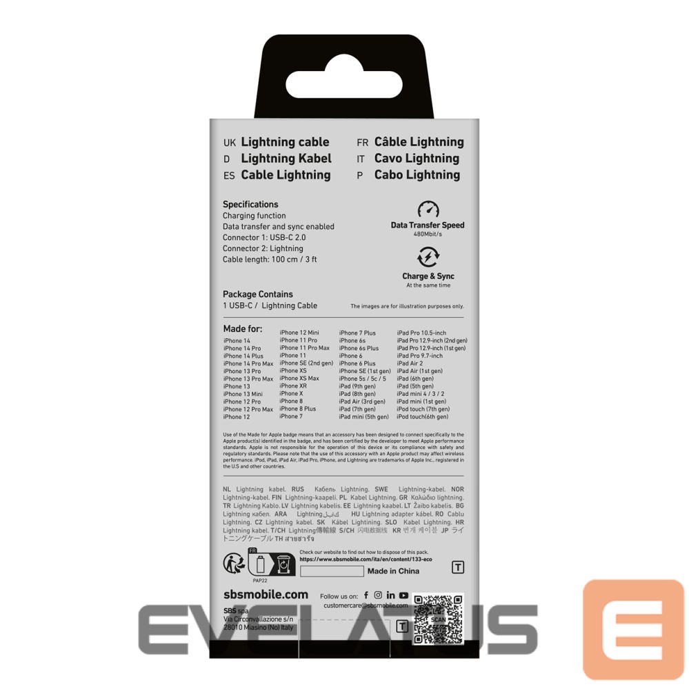 The SBS TECABLELIGTC1W cable has been certified by Apple, which guarantees safe and optimal operation with iPhones, iPads and other Apple devices.