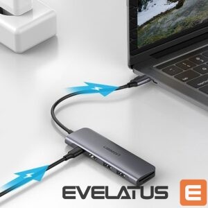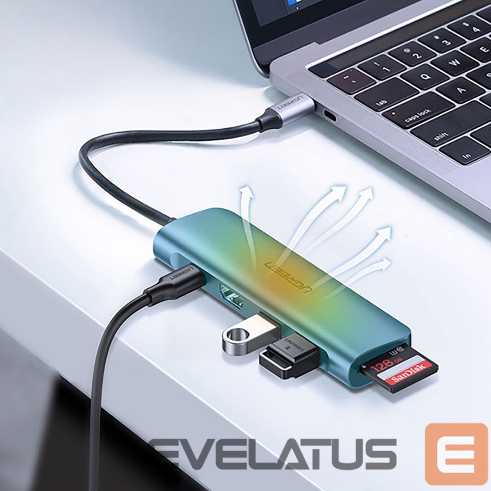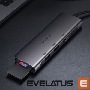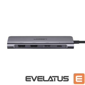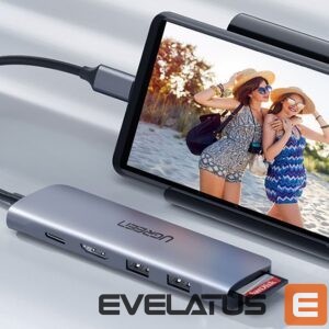 Kabelis Ugreen Ugreen CM195 6in1 adapter USB-C – HDMI / 2x USB-A 3.0 / USB-C PD / SD / TF reader – gray