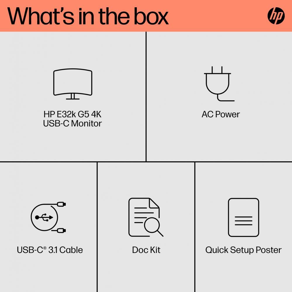 HP E32k G5 USB-C Monitor 31.5inch 4K HDMI DP
