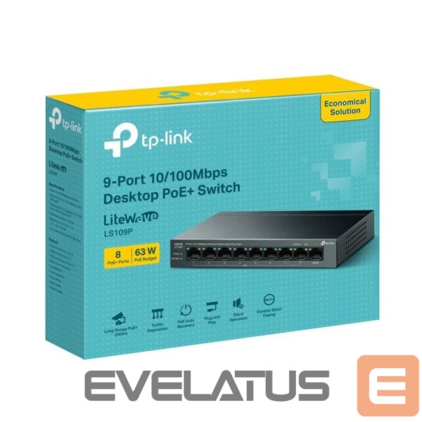 Nevadāms centrmezgls TP-Link NET SWITCH 9PORT 10/100M 8POE+/LS109P
